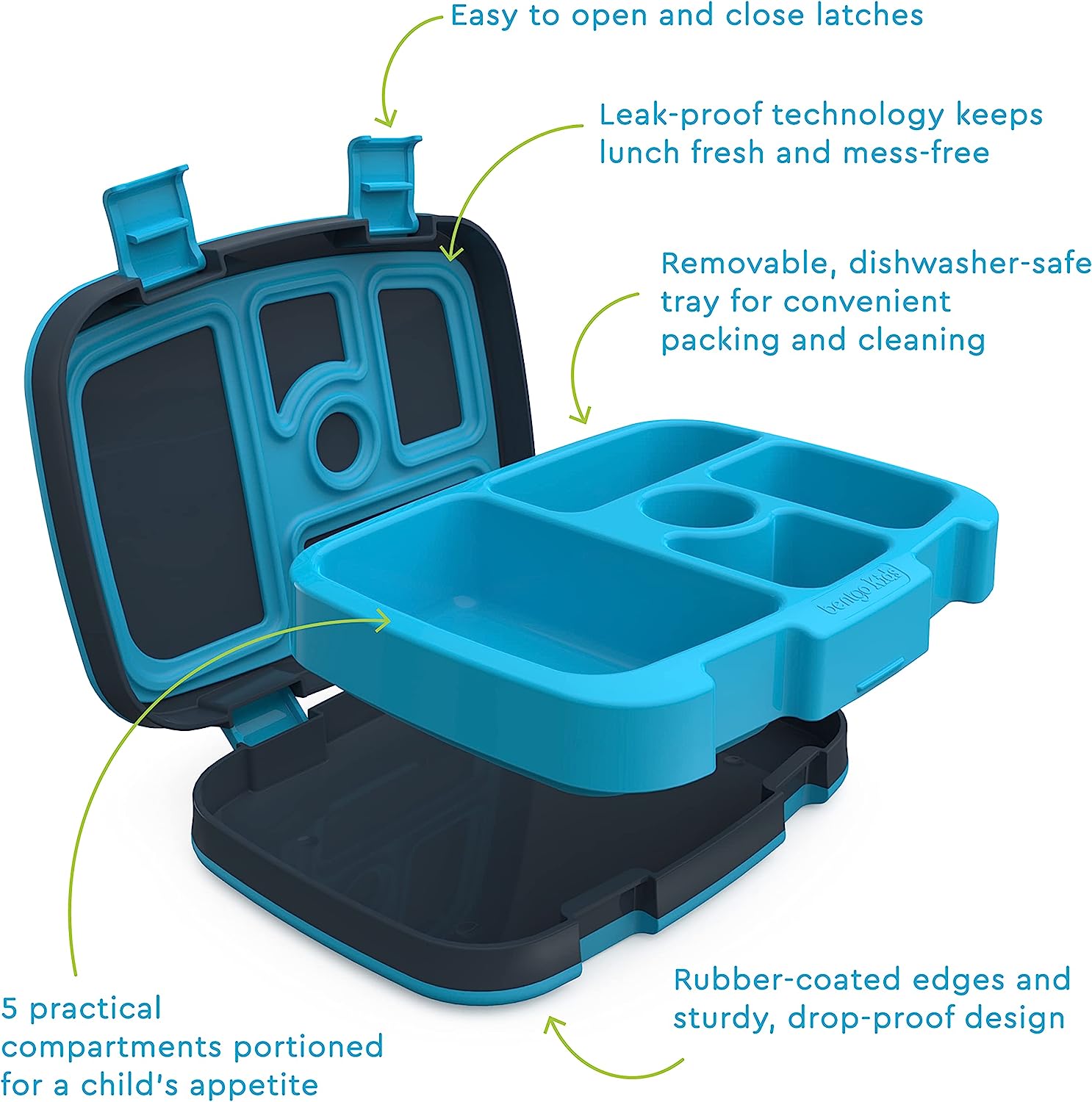 - LEAK-PROOF TECHNOLOGY: Keeps meals and snacks fresh and mess-free during transport – Designed with 2 kid-friendly latches that are easy for small hands to open and close